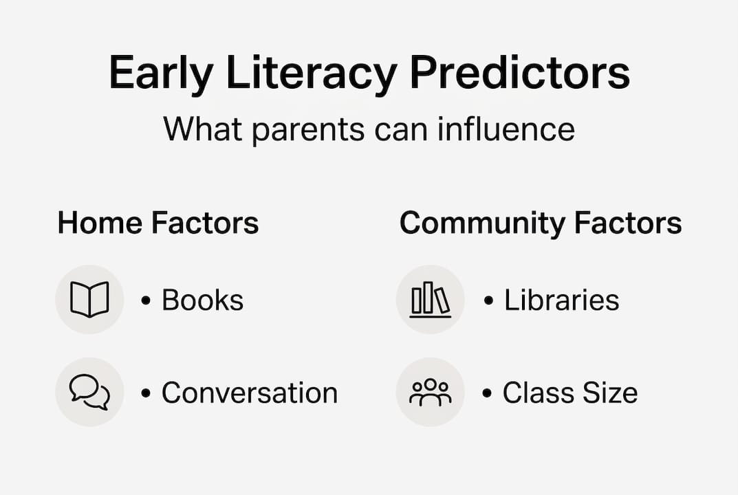 | Home environment matters most | Rich communication and access to books at home greatly increase early literacy success. |