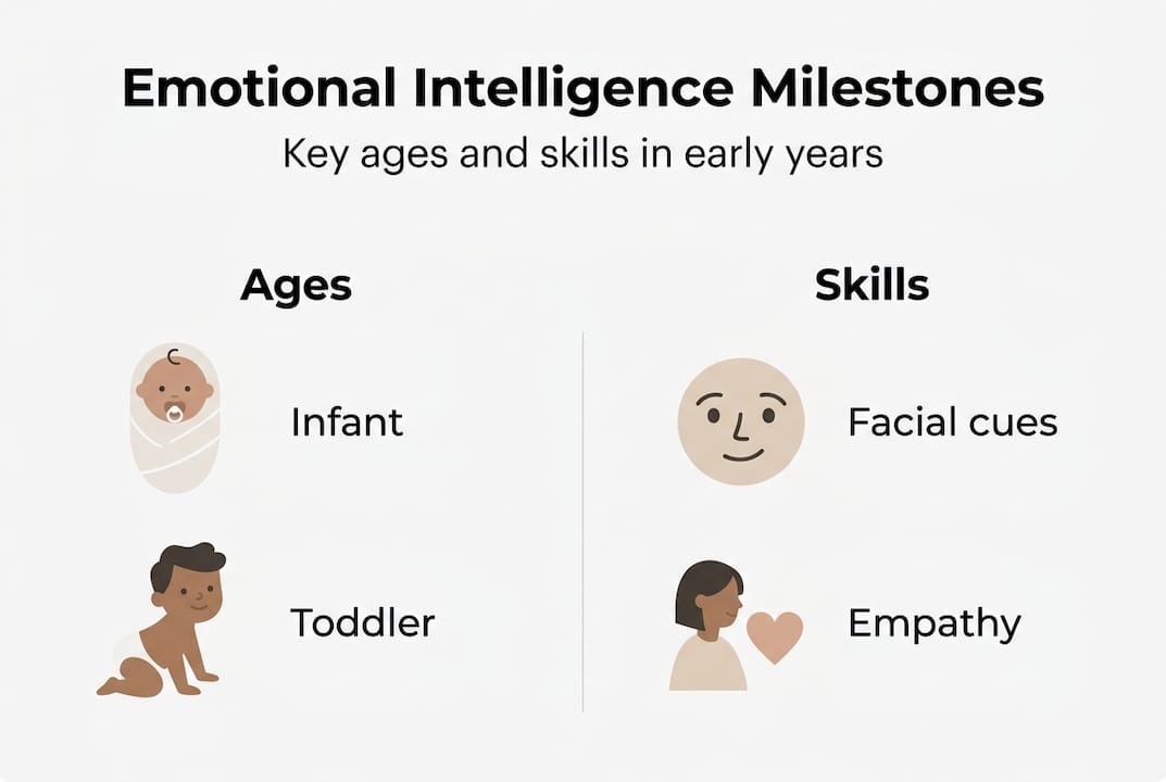 - Infancy (0 to 12 months): Babies recognize emotional expressions on faces, respond to tone of voice, and signal distress through crying. They are already reading the emotional room.